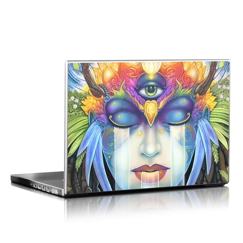 iStyles Universal Fit Laptop Skin design of Art paint, Paint, Painting, Art, Illustration, Fictional character, Symmetry, Cg artwork, Visual arts, Electric blue, with blue, yellow, orange, red, purple, blue, green, brown, gray colors, and tagged with fantasy, people, nature, flames, earth, terra, primordial, deities, ancestral, mother, uranus, titans, cyclopes, giants, pontus, eye, leaves.