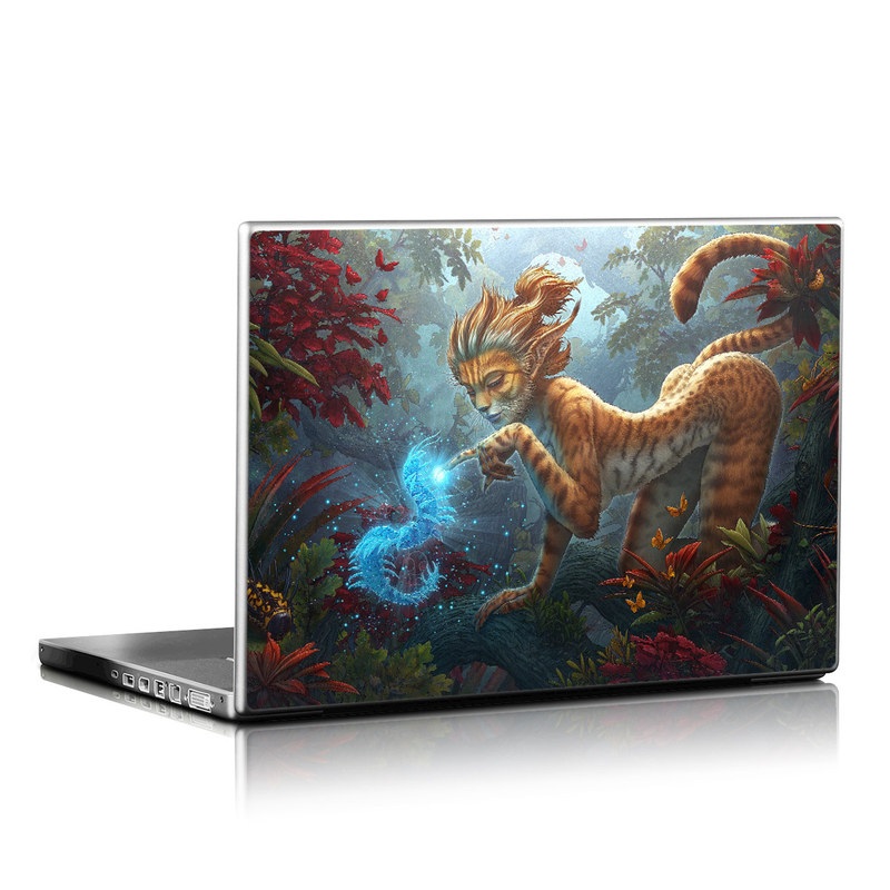 iStyles Universal Fit Laptop Skin design of Fictional character, Mythology, Illustration, Cg artwork, Sky, Organism, Dragon, Felidae, Mythical creature, Art, with yellow, red, black, green, blue colors, and tagged with fantasy, animals, patterns, people, nature, cat, fantasy, forest, nature, woman.