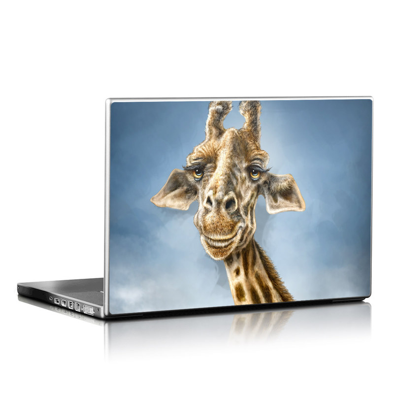 iStyles Universal Fit Laptop Skin design of Giraffe, Giraffidae, Terrestrial animal, Wildlife, Head, Snout, Organism, Adaptation, Close-up, Neck, with gray, black, blue, green colors, and tagged with animals.