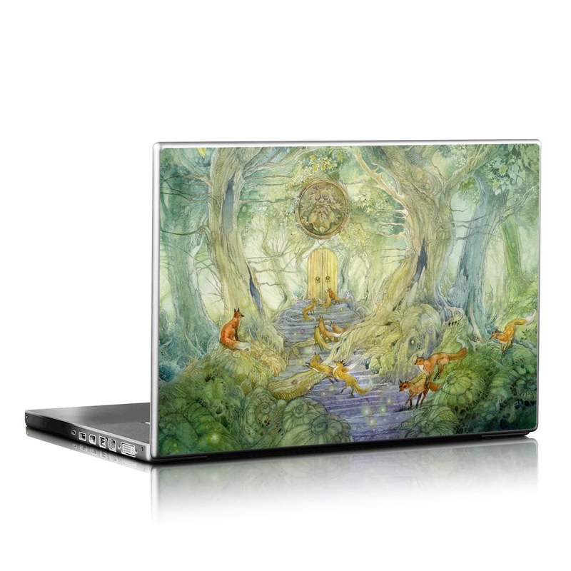 iStyles Universal Fit Laptop Skin design of Painting, Art, Mythology, Visual arts, Watercolor paint, Organism, Fictional character, Modern art, Landscape, Acrylic paint, with green, brown, red, yellow, blue, purple colors, and tagged with animals, nature, fantasy, animals, forest, fox, landscape, sci-fi, woods.