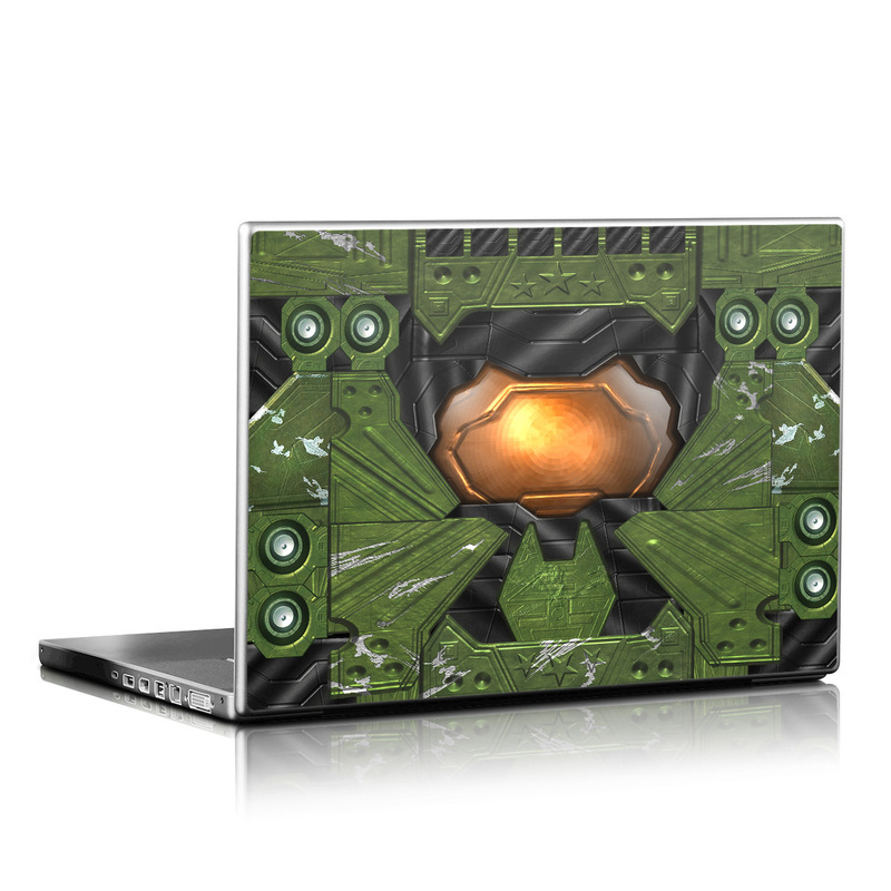 iStyles Universal Fit Laptop Skin design of Green, Fictional character, Games, Fiction, Pc game, Illustration, Strategy video game, Digital compositing, Art, Screenshot, with green, yellow, orange, black colors, and tagged with space.