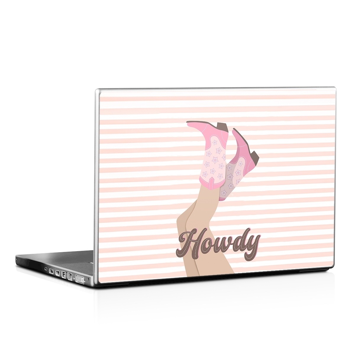 iStyles Universal Fit Laptop Skin design of Hand, Glove, Sleeve, Gesture, Font, Finger, Pink, Material property, Waist, Thumb, with pink, white, brown colors, and tagged with patterns, objects, fashion, signs, girl, shoes, boots, cowgirl.