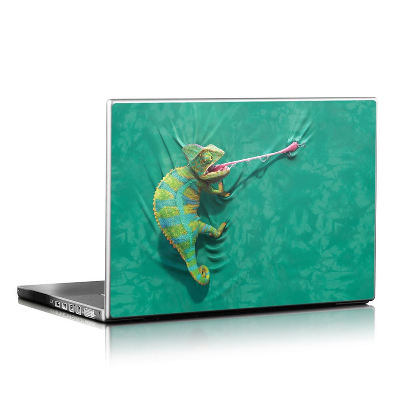 iStyles Universal Fit Laptop Skin design of Green, Fish, Tail, Chameleon, with blue, black, green, gray colors, and tagged with animals.