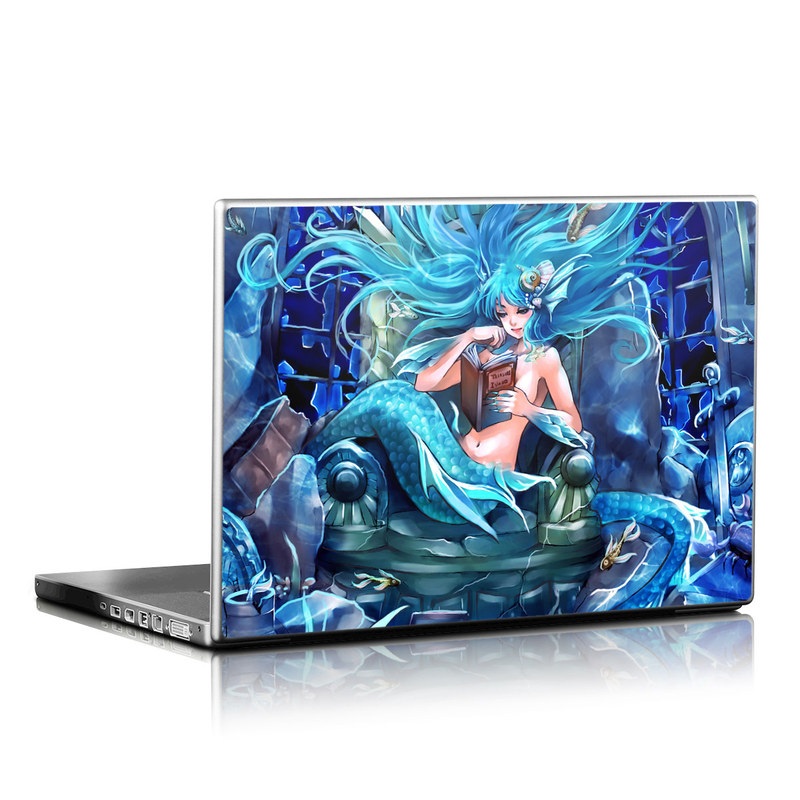 iStyles Universal Fit Laptop Skin design of Cg artwork, Fictional character, Electric blue, Illustration, Art, Mythology, Dragon, Games, Mythical creature, with blue, black, yellow, white colors, and tagged with people, objects, animals, fantasy, fantasy, fish, mermaid, ocean, sea, seashells, treasures.