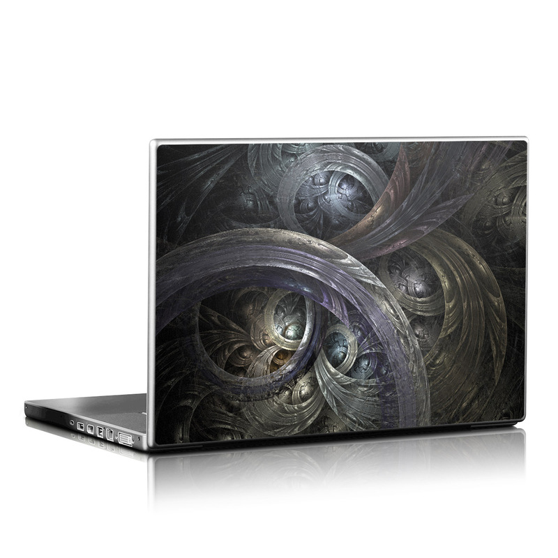 iStyles Universal Fit Laptop Skin design of Fractal art, Graphic design, Art, Cg artwork, Darkness, Circle, Pattern, Illustration, Graphics, Metal, with black, gray, blue colors, and tagged with fractals.