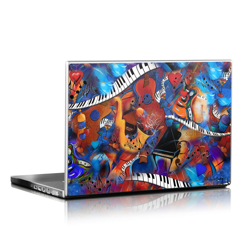 iStyles Universal Fit Laptop Skin design of Art, Graffiti, Mural, Modern art, Street art, Psychedelic art, Fictional character, Graphic design, Visual arts, Animated cartoon, with black, red, blue, gray, green colors, and tagged with music.