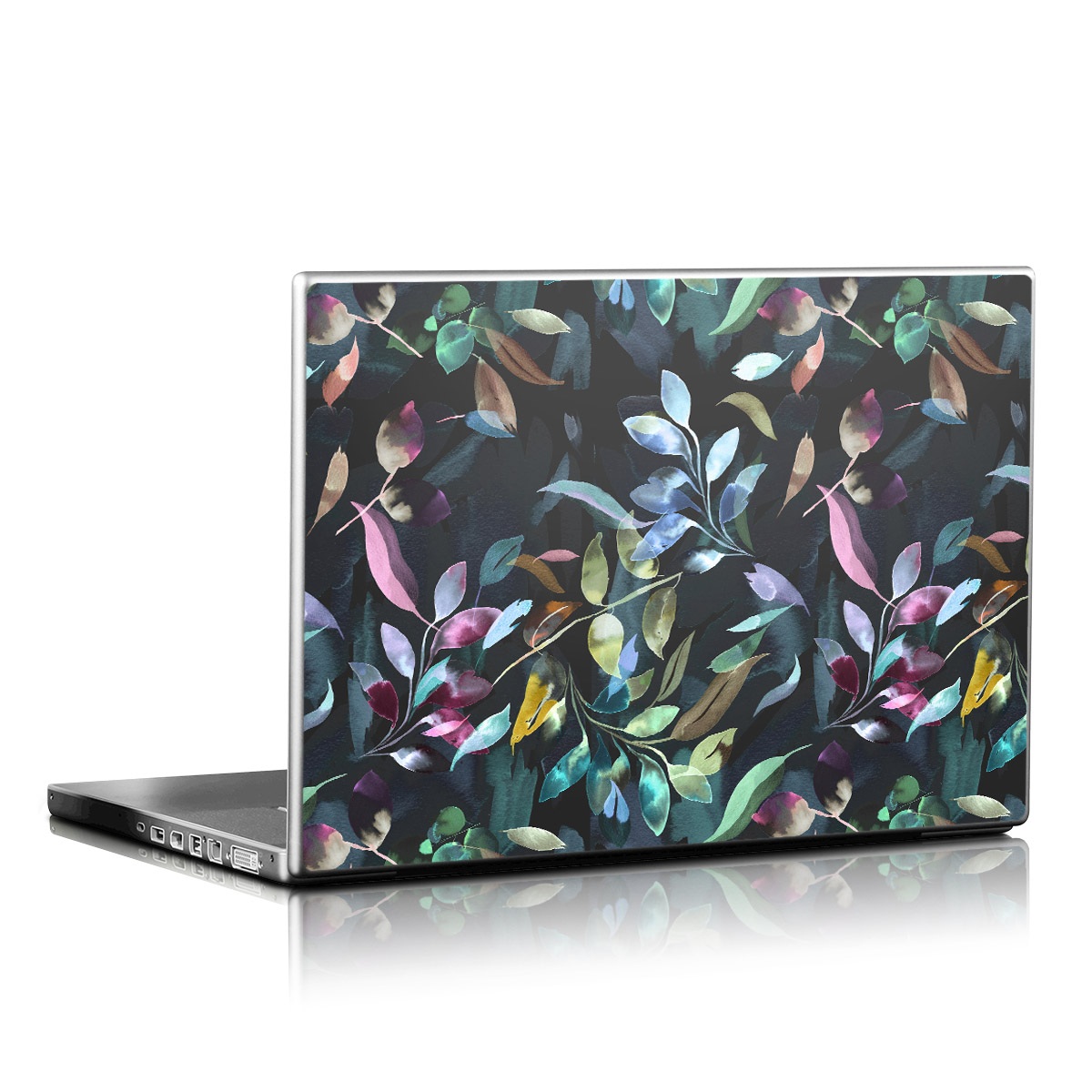 iStyles Universal Fit Laptop Skin design of Flower, Leaf, Plant, Botany, Organism, Line, Art, Petal, Groundcover, Terrestrial plant, with black, blue, green, purple, pink, red, white colors, and tagged with patterns, nature, leaves, fall, pattern.