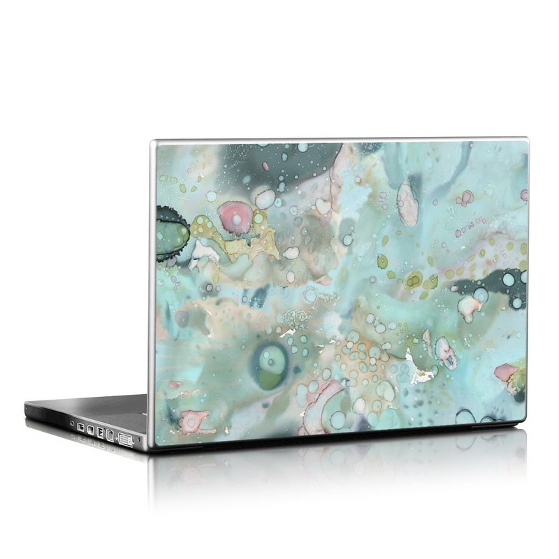 iStyles Universal Fit Laptop Skin design of Aqua, Blue, Green, Watercolor paint, Pattern, Turquoise, Organism, Design, Art, Painting, with blue, green, pink colors, and tagged with patterns, abstract, blue, green, organic.