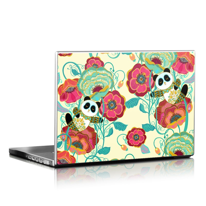 iStyles Universal Fit Laptop Skin design of Plant, Product, Green, Botany, Art, Flower, Pink, Rectangle, Red, Aqua, with white, red, pink, yellow, green, blue, black colors, and tagged with patterns, flowers, animals, objects, people, golden, pandas, flowers, garden.