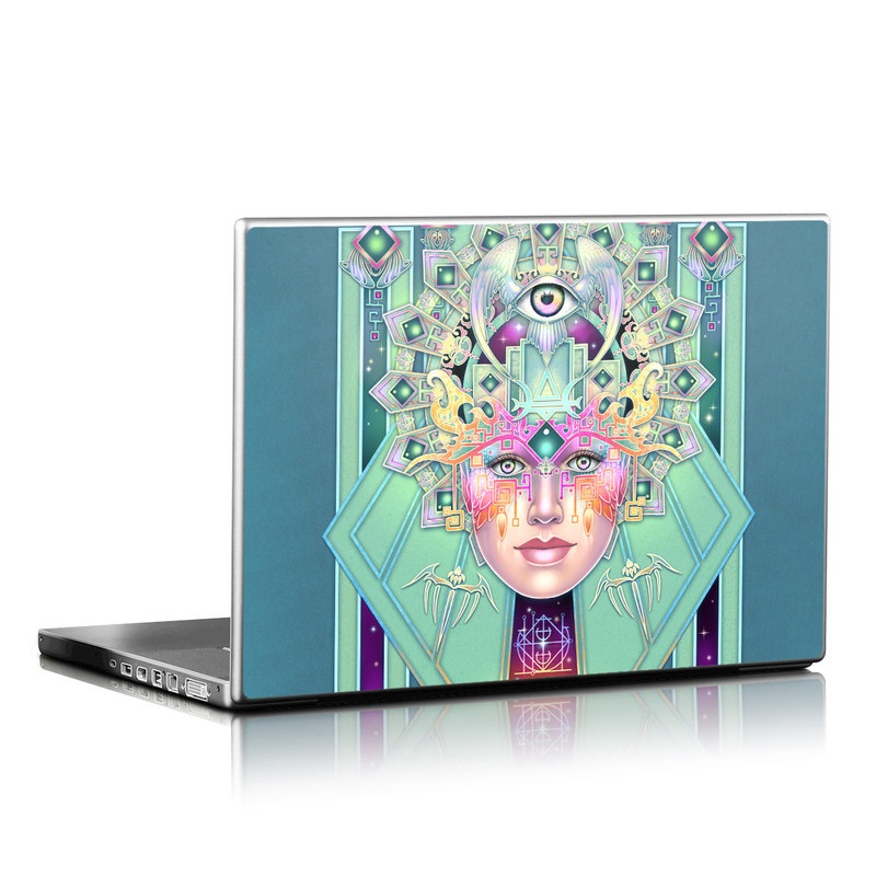 iStyles Universal Fit Laptop Skin design of Head, Eye, Eyelash, Font, Art, Magenta, Rectangle, Painting, Illustration, Pattern, with blue, green, yellow, red, purple, white colors, and tagged with fantasy, people, signs, objects, eye, wings, thankful.