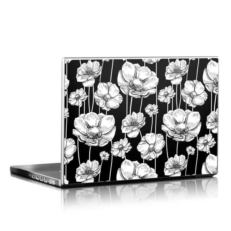 iStyles Universal Fit Laptop Skin design of Flower, Black-and-white, Plant, Botany, Petal, Design, Wildflower, Monochrome photography, Pattern, Monochrome, with black, gray, white colors, and tagged with patterns, flowers.