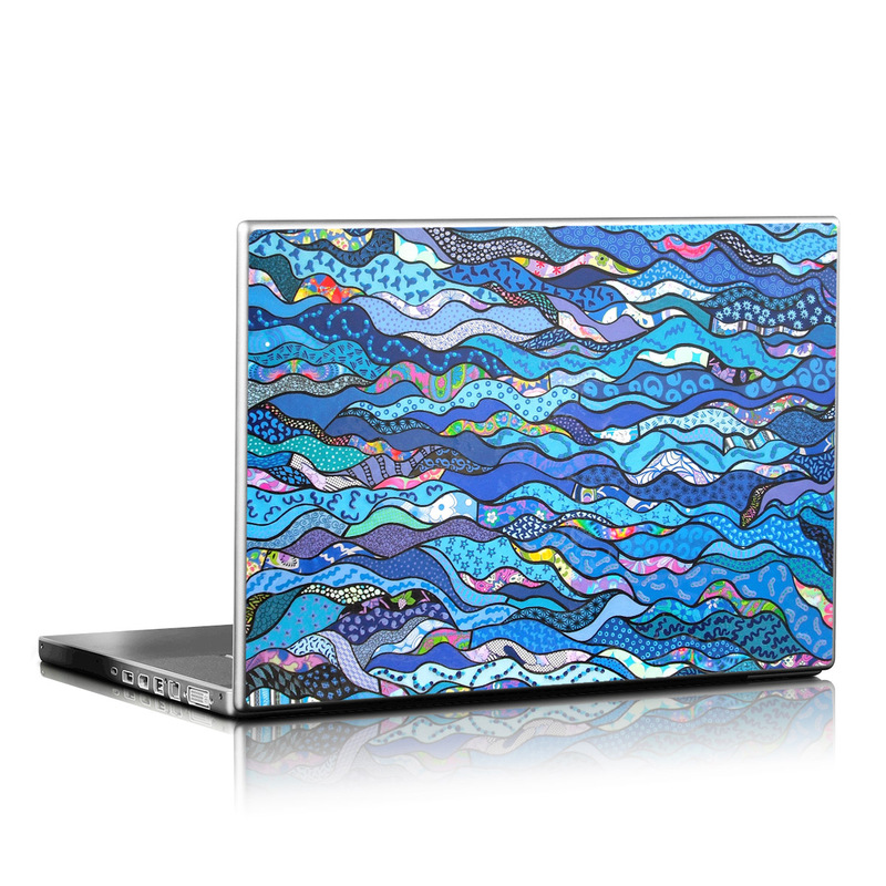 iStyles Universal Fit Laptop Skin design of Blue, Pattern, Aqua, Water, Line, Design, Textile, Psychedelic art, Electric blue, with blue, black, gray, purple colors, and tagged with abstract, flowers.