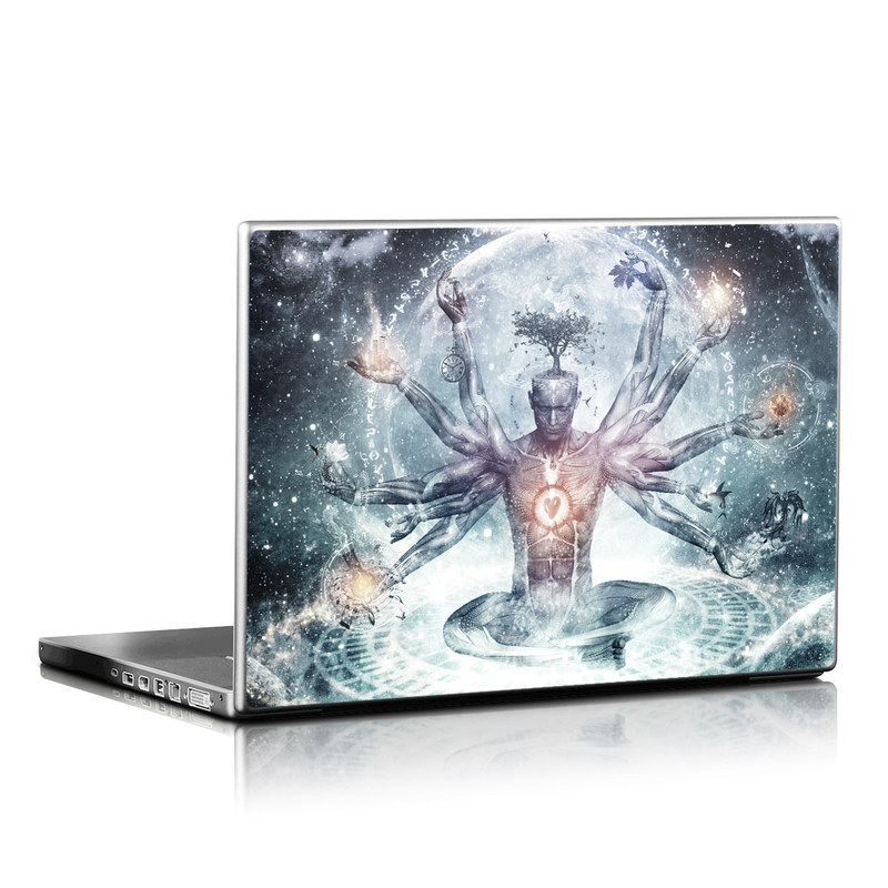iStyles Universal Fit Laptop Skin design of Mythology, Cg artwork, Water, Illustration, Fictional character, Space, Graphics, Art, Graphic design, with blue, red, orange, black, white colors, and tagged with people, fantasy, objects, nature, signs.