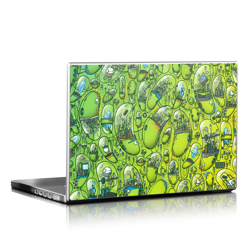 iStyles Universal Fit Laptop Skin design of Green, Pattern, Yellow, Design, Illustration, Plant, Art, Graphic design, Urban design, with green, blue, gray, yellow, orange colors, and tagged with objects, patterns, green, illustration, limegreen, pattern, technology, vector.