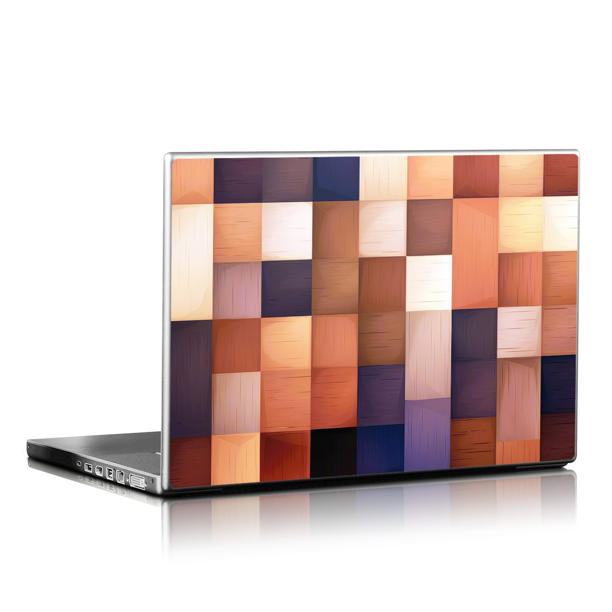 iStyles Universal Fit Laptop Skin design of Brown, Light, Rectangle, Product, Wood, Blue, Orange, Amber, Textile, Wood stain, with yellow, orange, red, black, brown, blue, purple colors, and tagged with patterns, autumn, fall, pattern, squares.