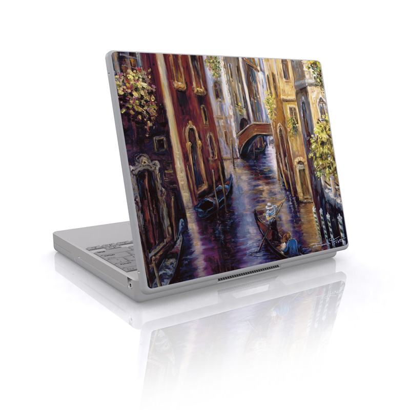 iStyles Universal Fit Laptop Skin design of Painting, Watercolor paint, Waterway, Gondola, Canal, Art, Modern art, Acrylic paint, Visual arts, Building, with black, gray, red, green, blue, pink colors, and tagged with fineart, urban.