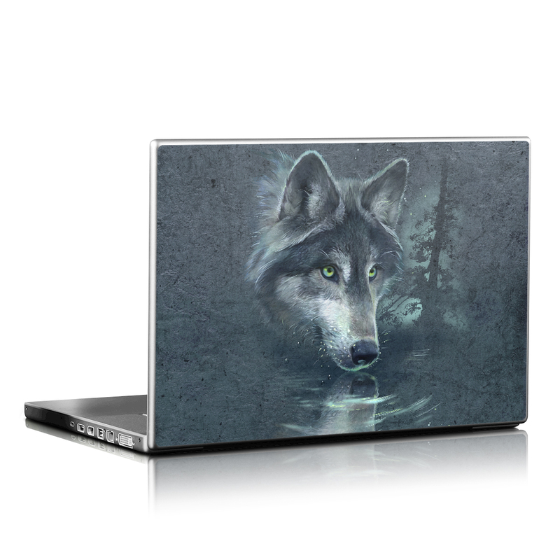 iStyles Universal Fit Laptop Skin design of Wolf, Canidae, Wildlife, Red wolf, Canis, canis lupus tundrarum, Snout, Saarloos wolfdog, Wolfdog, Carnivore, with black, gray, blue colors, and tagged with animals.