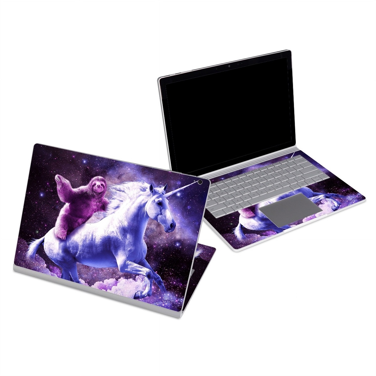 iStyles Microsoft Surface Book Series Skin design of Purple, Unicorn, Fictional character, Violet, Mythical creature, Illustration, Sky, Graphic design, Space, Constellation, with black, white, blue, purple, gray, brown colors, and tagged with space, animals, fantasy, animals, funny, galaxy, lasers, random, space, weird.
