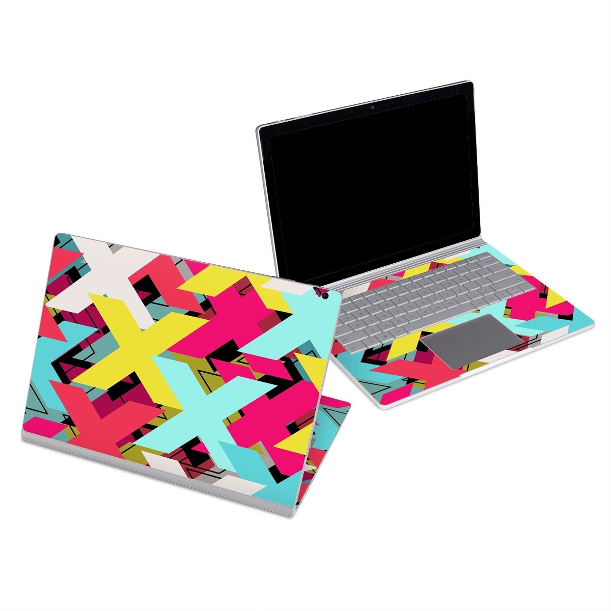 iStyles Microsoft Surface Book Series Skin design of Pattern, Graphic design, Line, Design, Triangle, Font, Illustration, Magenta, Visual arts, with yellow, blue, white, black, red, pink colors, and tagged with patterns, signs.