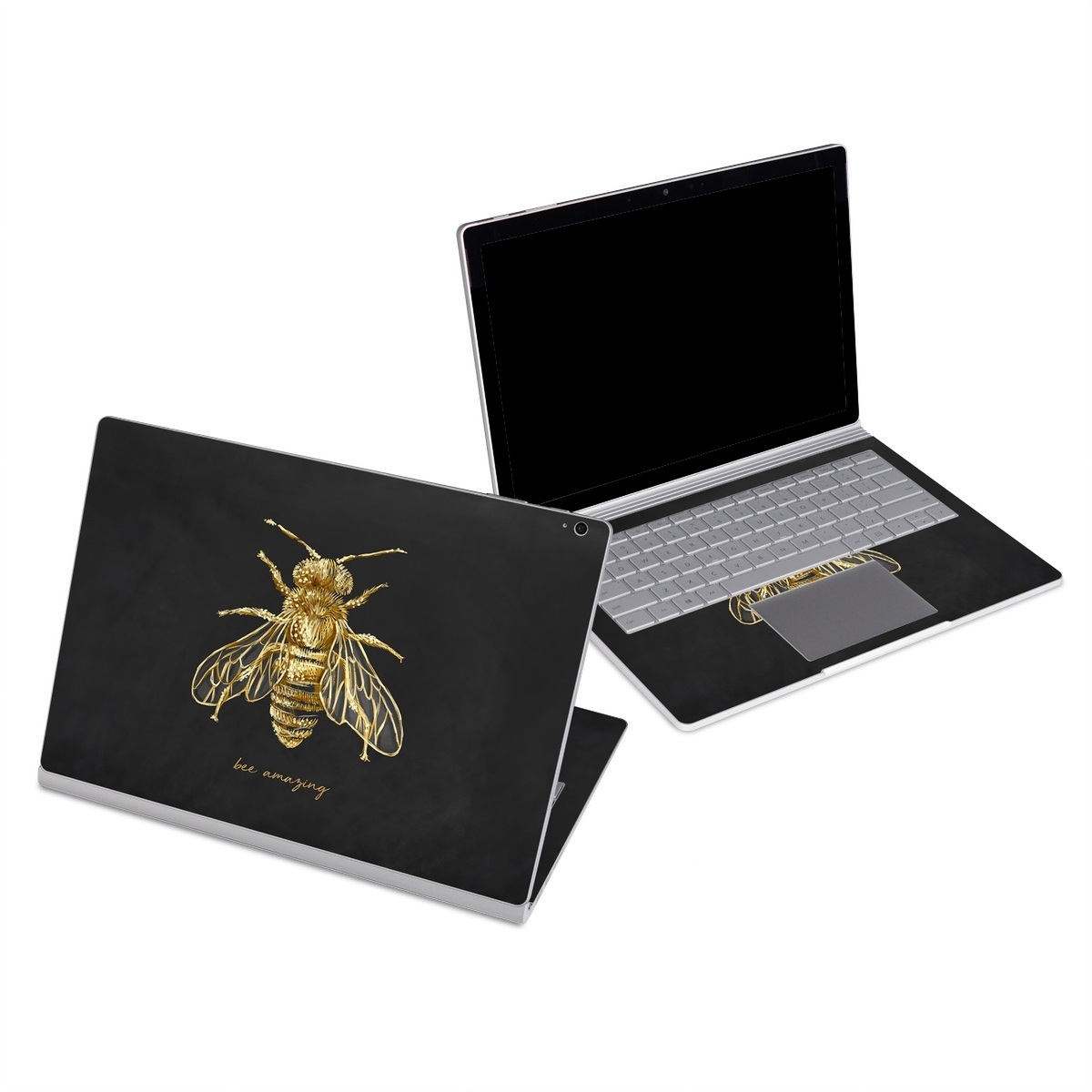 iStyles Microsoft Surface Book Series Skin design of Insect, Invertebrate, Membrane-winged insect, Arthropod, Pest, Net-winged insects, Bee, Cicada, Macro photography, Pollinator, with black, yellow, white colors, and tagged with animals, signs, bee, bees, bug, draw, drawing, glitter, gold, insect, sketch.