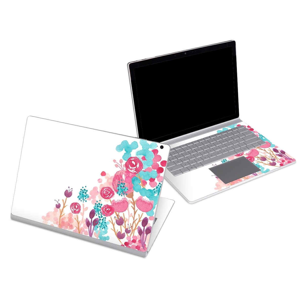 iStyles Microsoft Surface Book Series Skin design of Pink, Pattern, Design, Illustration, Clip art, Plant, Graphics, Art, with white, pink, purple, blue, red colors, and tagged with flowers.