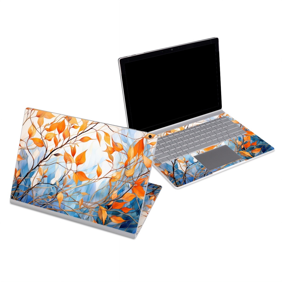 iStyles Microsoft Surface Book Series Skin design of Plant, Amber, Twig, Branch, Orange, Vegetation, Natural landscape, Tree, Woody plant, Deciduous, with yellow, orange, red, blue, white, purple colors, and tagged with nature, autumn, fall.