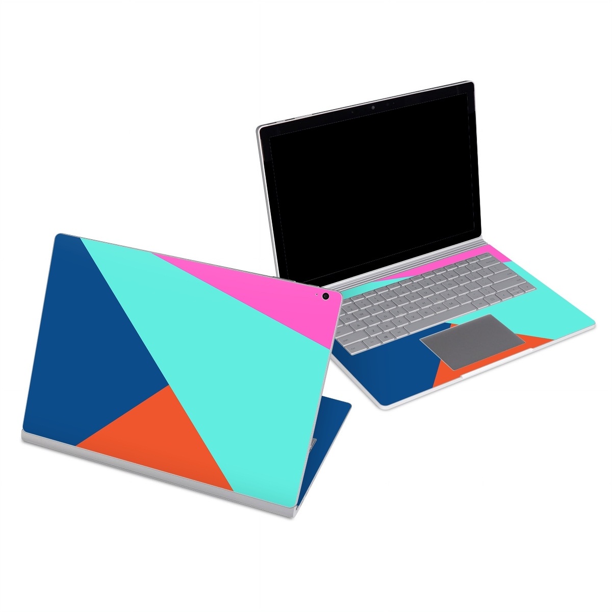 iStyles Microsoft Surface Book Series Skin design of Blue, Colorfulness, Turquoise, Line, Azure, Triangle, Pattern, Graphic design, Magenta, with blue, pink, orange, red colors, and tagged with patterns, block, blocking, color, colorblock, geometric, shape, simple.