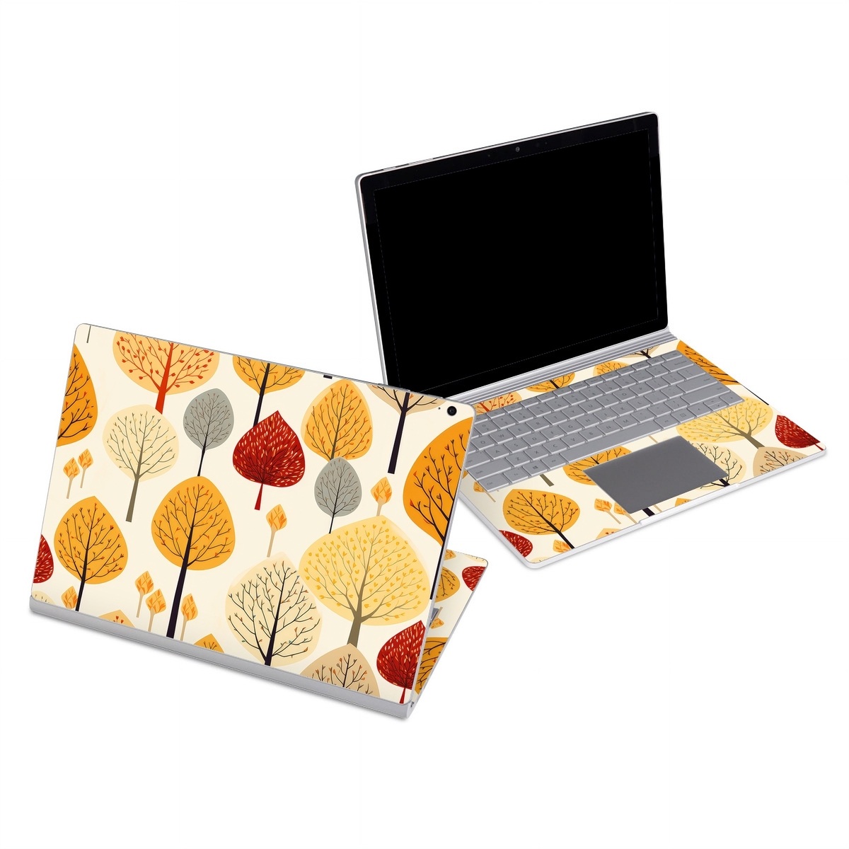 iStyles Microsoft Surface Book Series Skin design of Plant, Leaf, Botany, Nature, Organism, Yellow, Tree, Woody plant, Terrestrial plant, Adaptation, with yellow, orange, red, black, brown colors, and tagged with nature, patterns, autumn, leaves, trees.