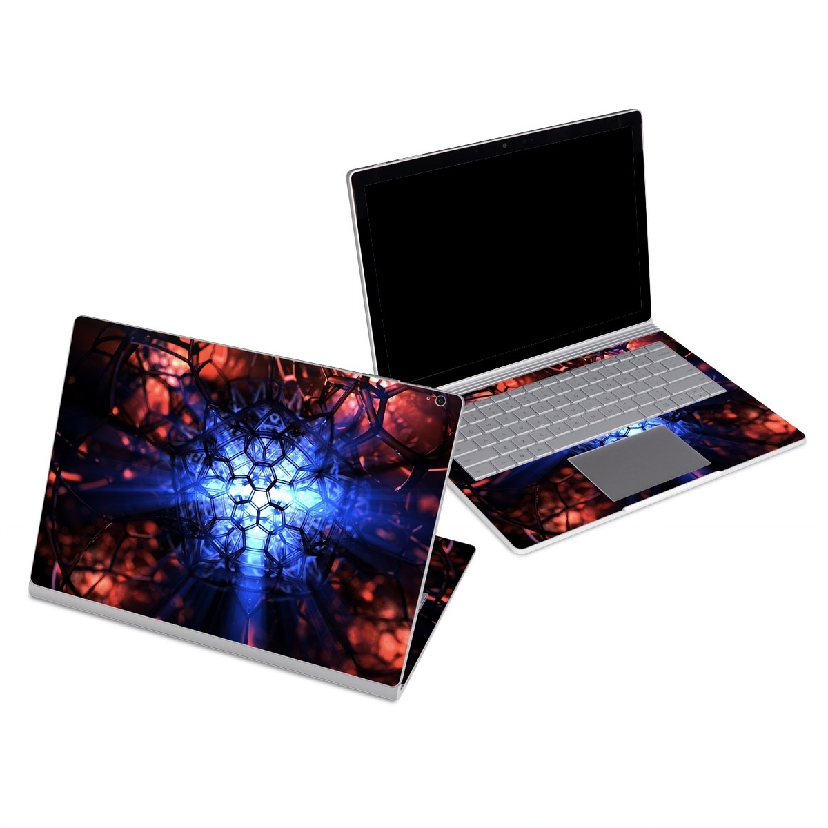 iStyles Microsoft Surface Book Series Skin design of Blue, Fractal art, Red, Light, Pattern, Lighting, Art, Kaleidoscope, Design, Psychedelic art, with black, blue, red colors, and tagged with patterns.
