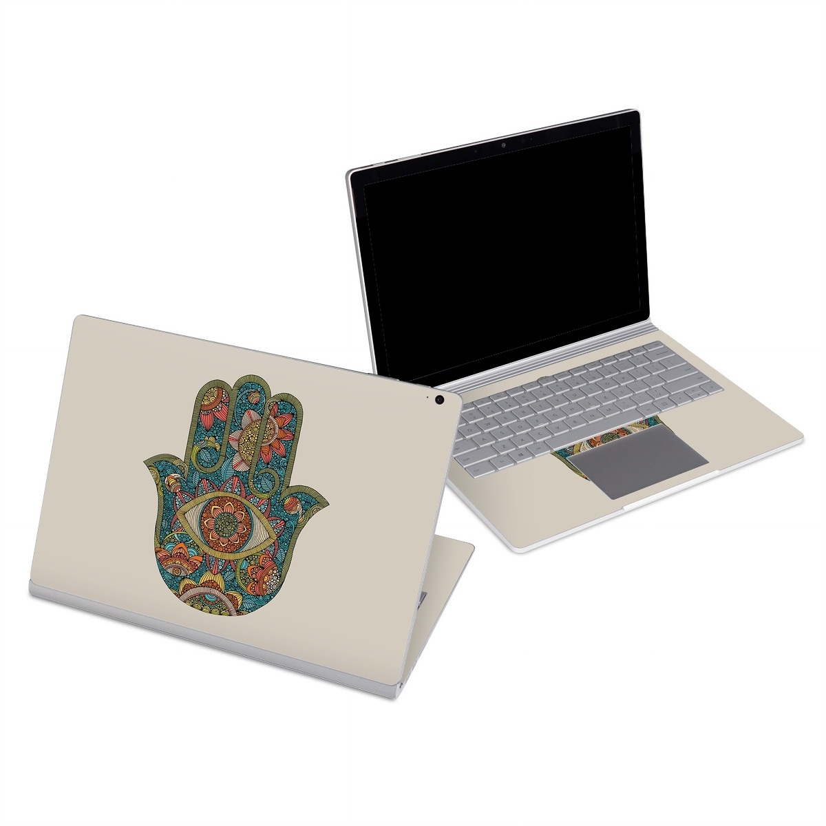 iStyles Microsoft Surface Book Series Skin design of Art, Pattern, Symmetry, Circle, Font, Visual arts, Illustration, Painting, Symbol, Drawing, with blue, red, yellow, orange, green colors, and tagged with patterns, flowers, signs, people, evileye, flowers, hand, protection.