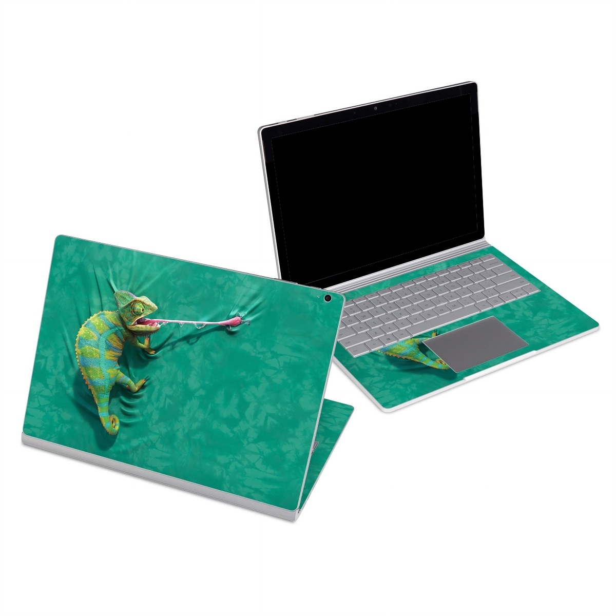 iStyles Microsoft Surface Book Series Skin design of Green, Fish, Tail, Chameleon, with blue, black, green, gray colors, and tagged with animals.