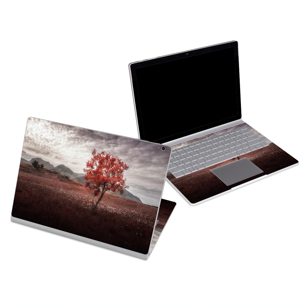 iStyles Microsoft Surface Book Series Skin design of Natural landscape, Nature, Tree, Sky, Red, Natural environment, Atmospheric phenomenon, Leaf, Cloud, Woody plant, with black, gray, red colors, and tagged with nature.