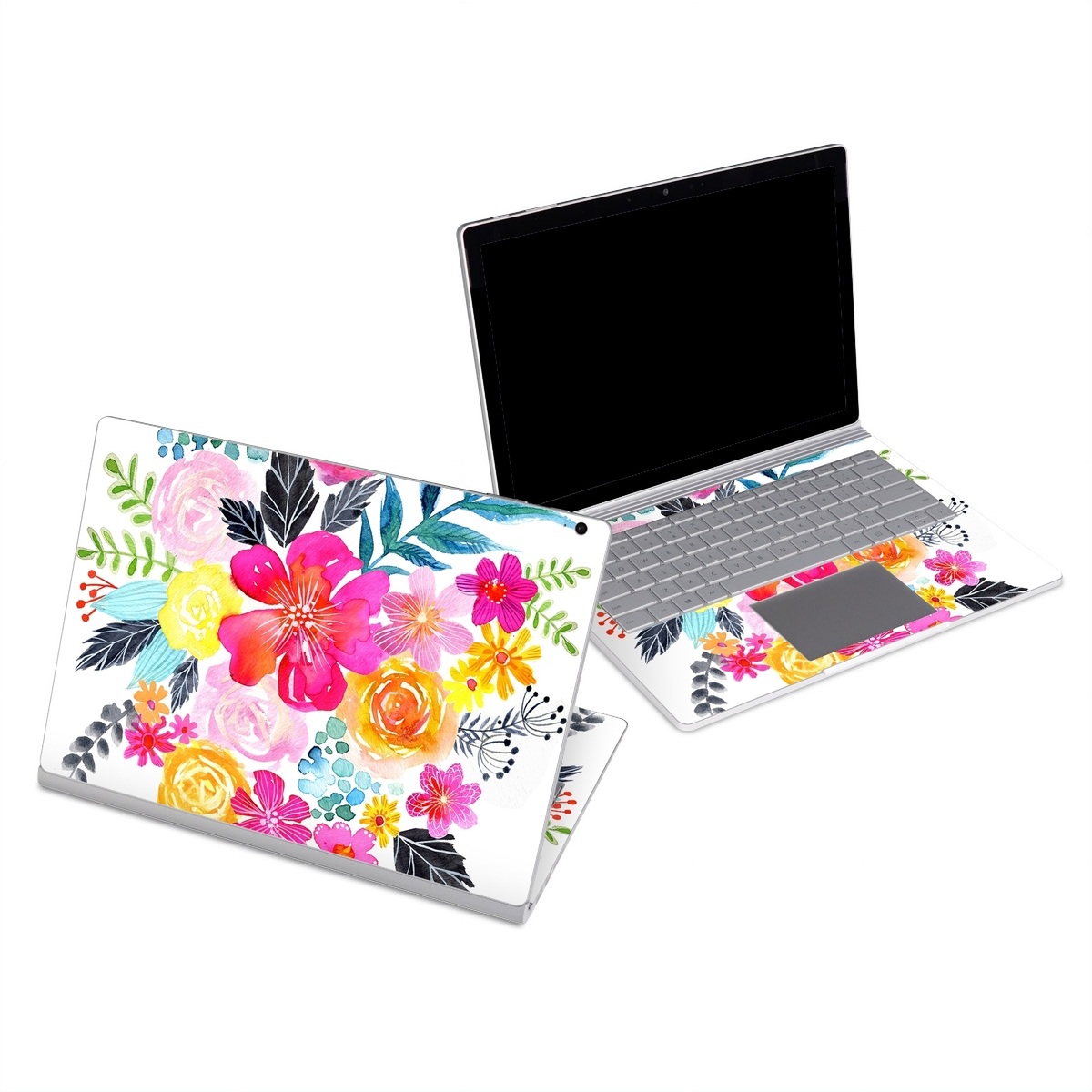 iStyles Microsoft Surface Book Series Skin design of Flower, Clip art, Bouquet, Plant, Illustration, Floral design, Pink, Petal, Botany, Design, with white, pink, orange, red, yellow, blue, black, green colors, and tagged with flowers, patterns, bouquet, florals, flowers.