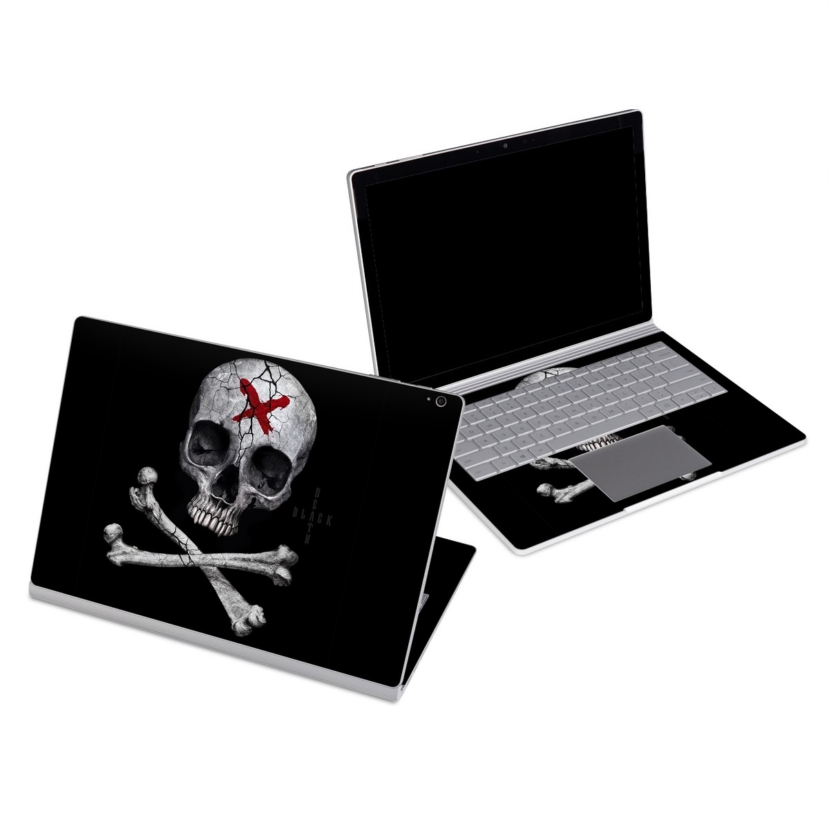 iStyles Microsoft Surface Book Series Skin design of Bone, Skull, Skeleton, Jaw, Illustration, Animation, Fictional character, Still life photography, with black, white, gray colors, and tagged with skulls, black, goth, gothic, skull, skullandcrossbones.