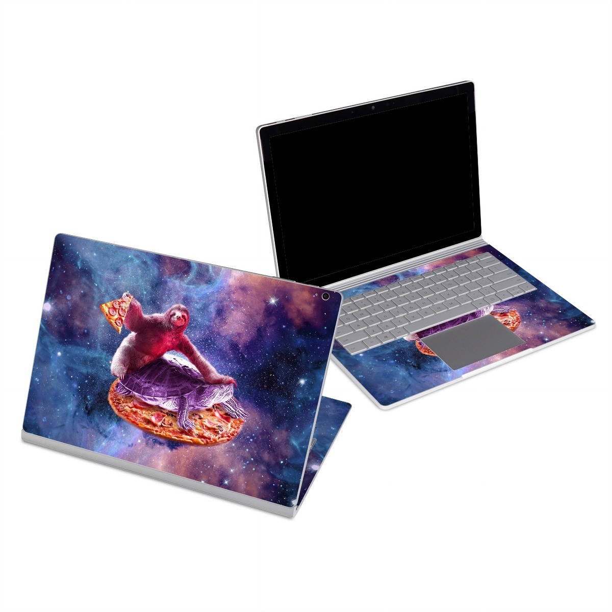iStyles Microsoft Surface Book Series Skin design of Illustration, Pink, Turtle, Art, Sea turtle, Space, Painting, Fictional character, Tortoise, with black, white, blue, gray, red, yellow colors, and tagged with space, animals, fantasy, animals, funny, galaxy, lasers, random, space, weird.