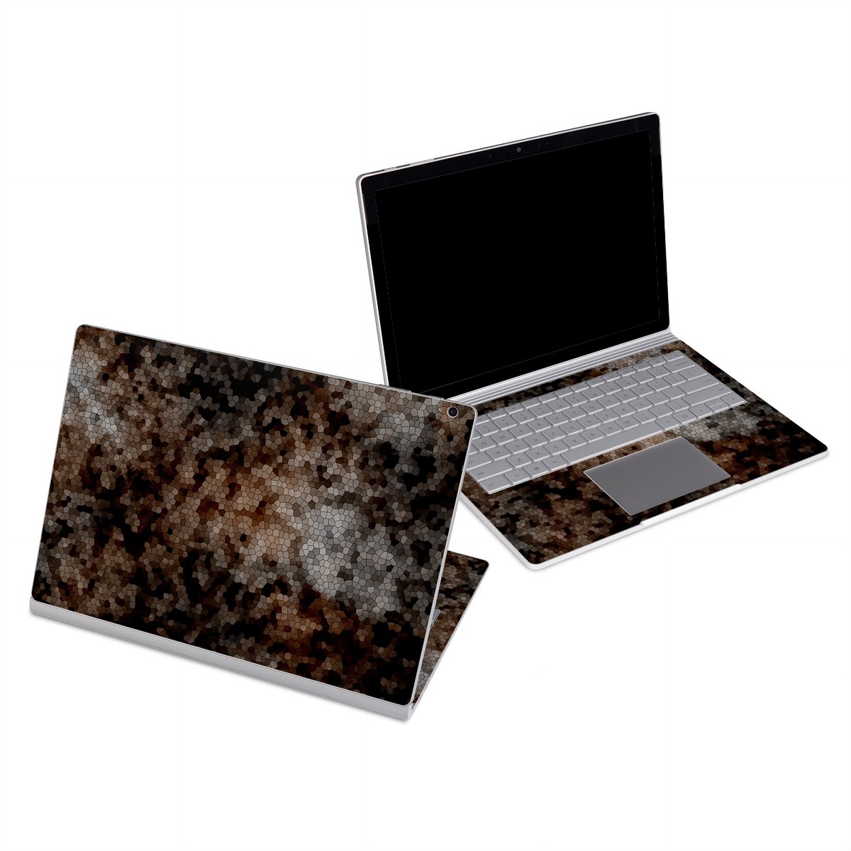iStyles Microsoft Surface Book Series Skin design of Brown, Design, Soil, Pattern, Rock, Rust, Granite, Metal, with black, white, gray, brown colors, and tagged with patterns.