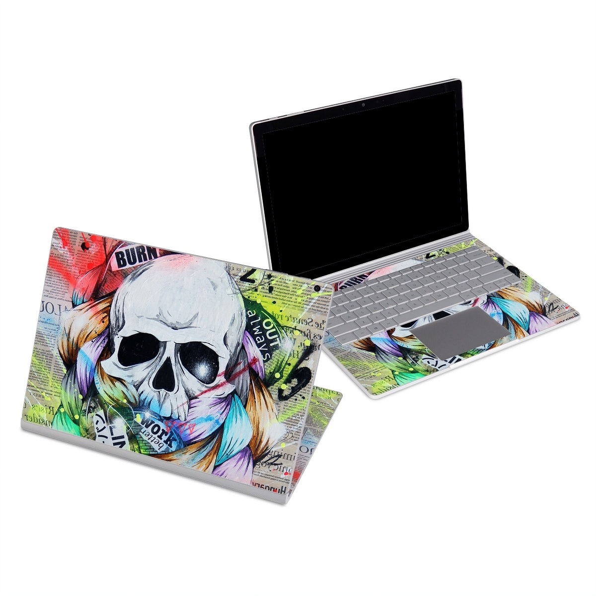 iStyles Microsoft Surface Book Series Skin design of Street art, Text, Graphic design, Font, Illustration, Art, Graffiti, Skull, Poster, Advertising, with gray, black, red, green, blue colors, and tagged with abstract, skulls, signs.