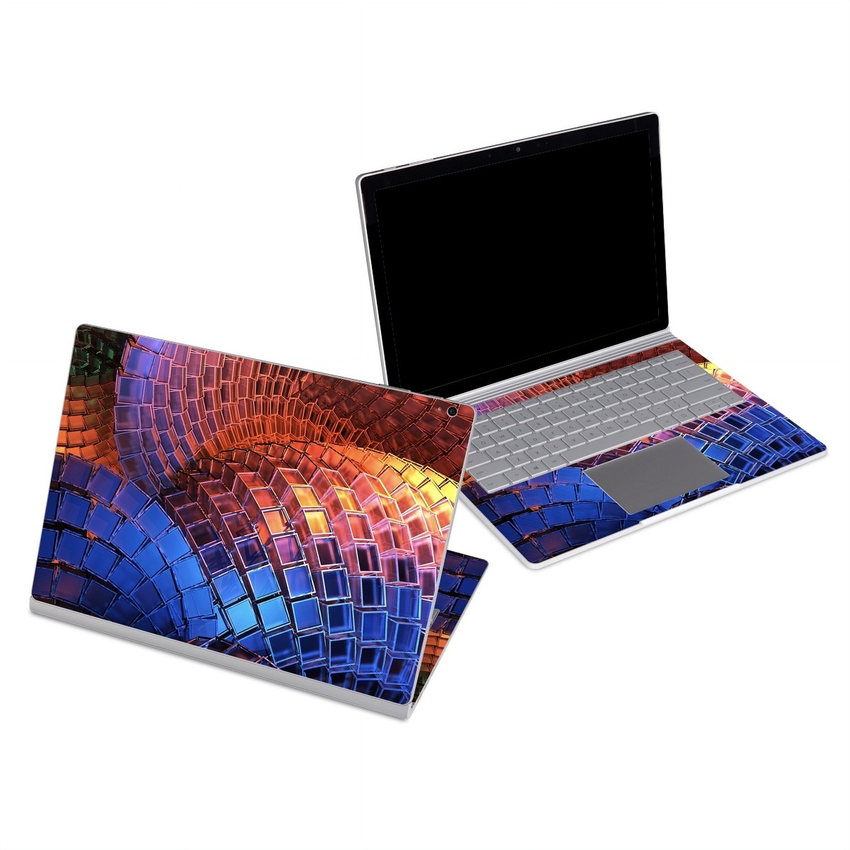 iStyles Microsoft Surface Book Series Skin design of Blue, Red, Orange, Light, Pattern, Architecture, Design, Fractal art, Colorfulness, Psychedelic art, with black, red, blue, purple, gray colors, and tagged with patterns.