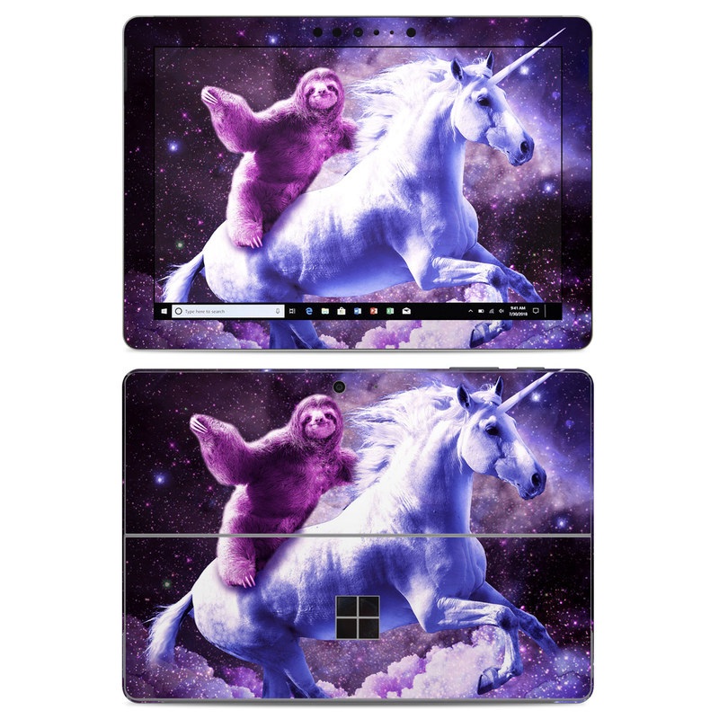iStyles Microsoft Surface Go Skin design of Purple, Unicorn, Fictional character, Violet, Mythical creature, Illustration, Sky, Graphic design, Space, Constellation, with black, white, blue, purple, gray, brown colors, and tagged with space, animals, fantasy, animals, funny, galaxy, lasers, random, space, weird.