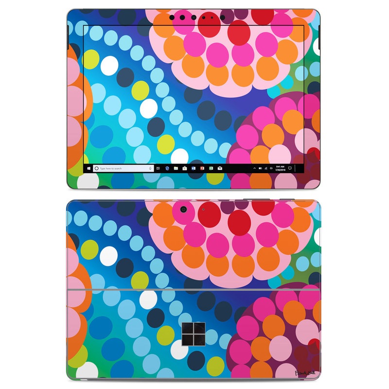 iStyles Microsoft Surface Go Skin design of Pattern, Circle, Orange, Colorfulness, Design, Line, Polka dot, Graphic design, Graphics, Heart, with blue, green, pink, orange, purple colors, and tagged with patterns, abstract, abstract, bold, dots, bright, colorful, polkadots.