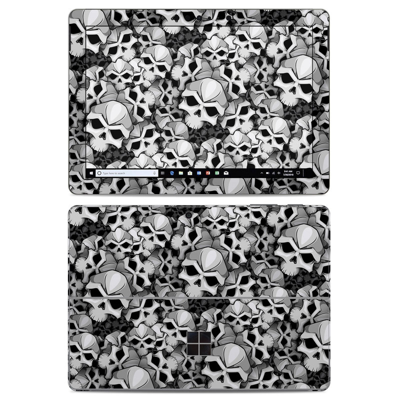 iStyles Microsoft Surface Go Skin design of Pattern, Black-and-white, Monochrome, Ball, Football, Monochrome photography, Design, Font, Stock photography, Photography, with gray, black colors, and tagged with patterns, skulls.