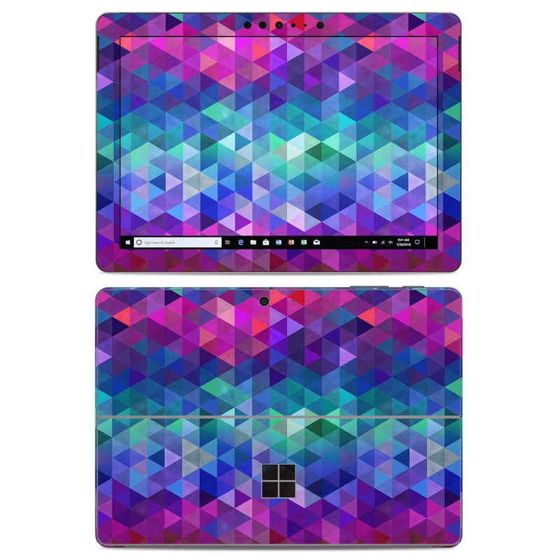 iStyles Microsoft Surface Go Skin design of Purple, Violet, Pattern, Blue, Magenta, Triangle, Line, Design, Graphic design, Symmetry, with blue, purple, green, red, pink colors, and tagged with patterns.