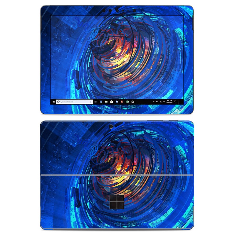 iStyles Microsoft Surface Go Skin design of Blue, Water, Circle, Vortex, Electric blue, Wave, Liquid, Graphics, Pattern, Colorfulness, with blue, orange, yellow colors, and tagged with abstract.