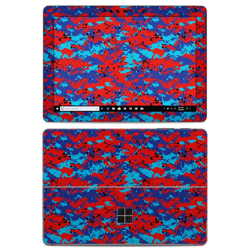 iStyles Microsoft Surface Go Skin design of Blue, Red, Pattern, Textile, Electric blue, with blue, red colors, and tagged with military, patterns, lookslike, camo, digitalcamo.