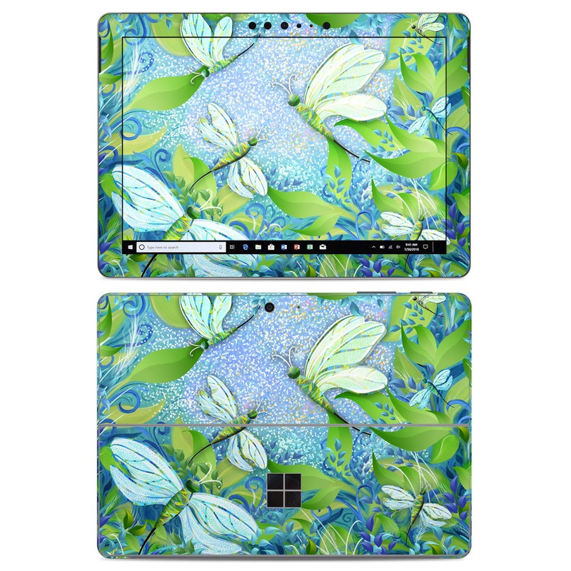 iStyles Microsoft Surface Go Skin design of Green, Blue, Leaf, Plant, Pattern, Tree, Design, Organism, Branch, Flower, with gray, blue, green, purple colors, and tagged with nature, patterns, animals.