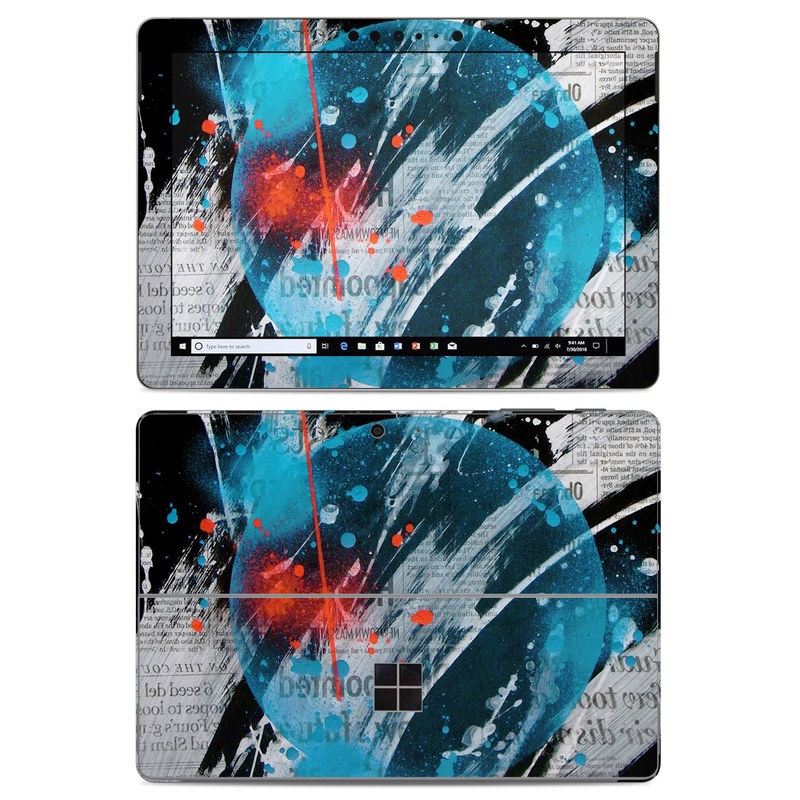 iStyles Microsoft Surface Go Skin design of Graphic design, Illustration, Graphics, Design, Art, Space, World, with black, gray, blue, red colors, and tagged with abstract.