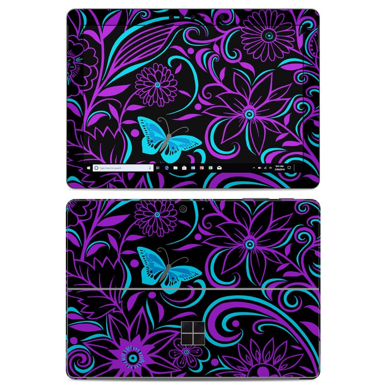 iStyles Microsoft Surface Go Skin design of Pattern, Purple, Violet, Turquoise, Teal, Design, Floral design, Visual arts, Magenta, Motif, with black, purple, blue colors, and tagged with flowers, patterns.