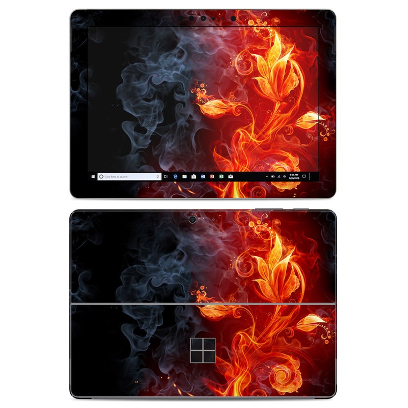 iStyles Microsoft Surface Go Skin design of Flame, Fire, Heat, Red, Orange, Fractal art, Graphic design, Geological phenomenon, Design, Organism, with black, red, orange colors, and tagged with flowers, flames.