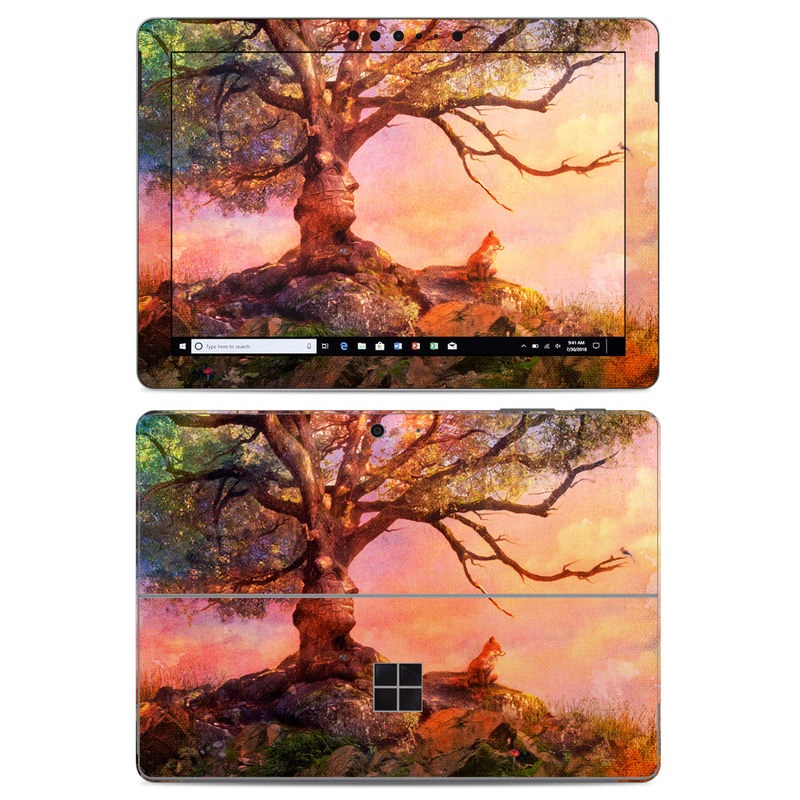 iStyles Microsoft Surface Go Skin design of Nature, Tree, Sky, Natural landscape, Branch, Leaf, Woody plant, Trunk, Landscape, Plant, with pink, red, black, green, gray, orange colors, and tagged with fineart, animals, fantasy, nature.