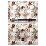 iStyles Microsoft Surface Go Skin design of Pink, Pattern, Lilac, Flower, Plant, Petal, Floral design, Textile, Design, Blossom, with white, red, pink, blue, brown colors, and tagged with patterns, flowers, nature, bouquet, filigree, floral, flower, flowers, pastel.